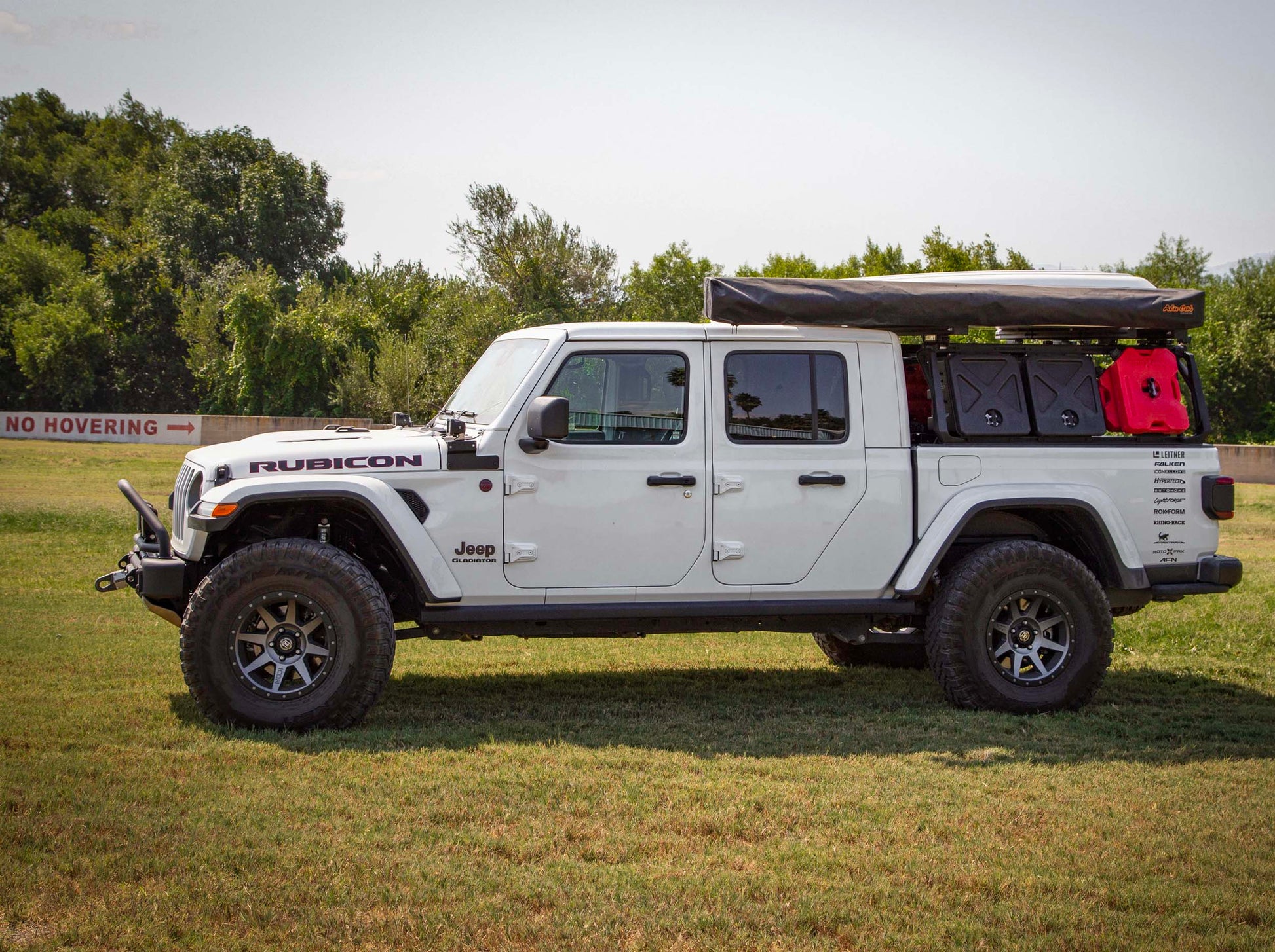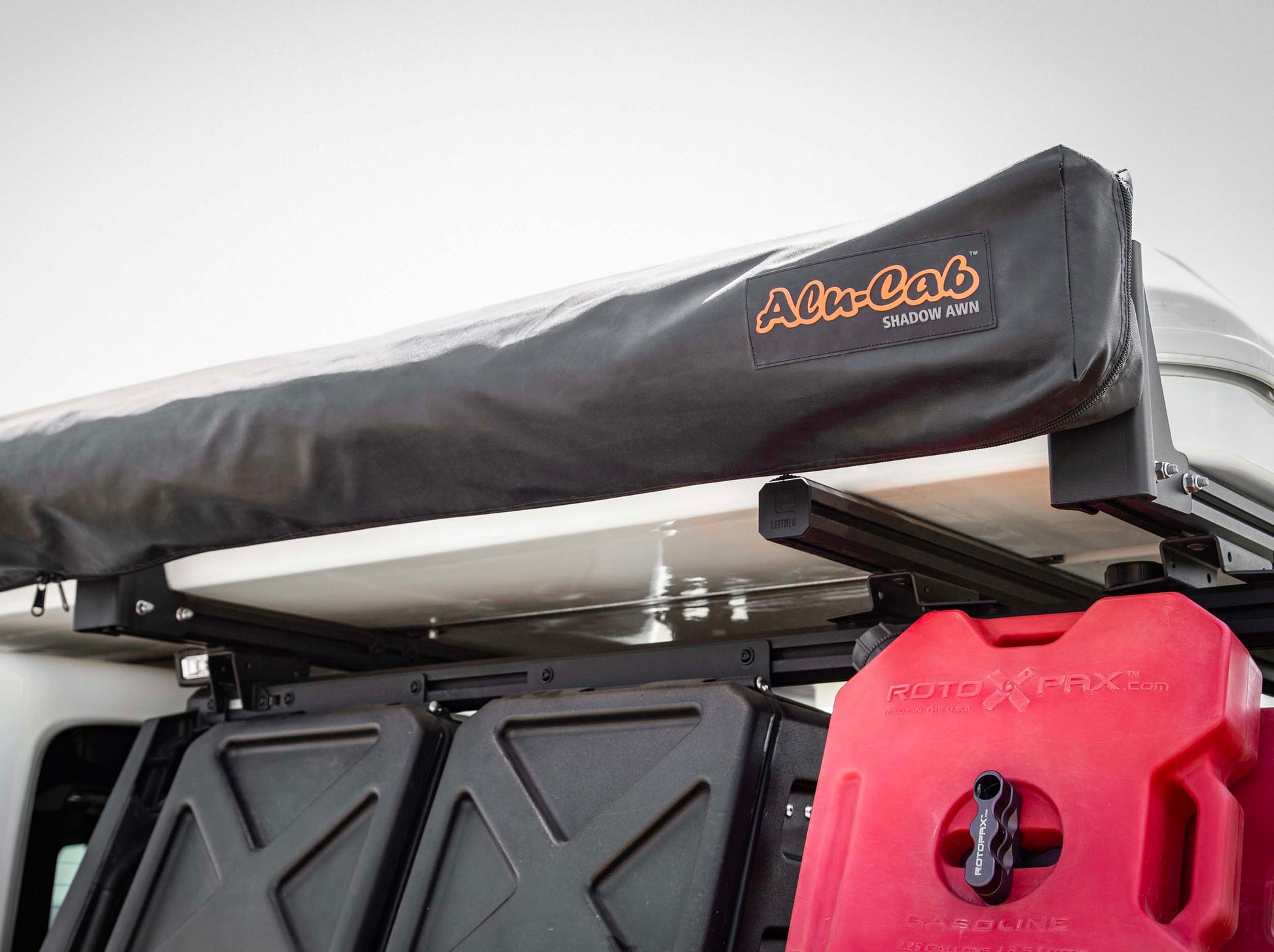 El soporte para toldo HD fue diseñado para los toldos más pesados y grandes, y específicamente diseñado para el toldo Alu-Cab Shadow. Este es un producto IMPRESCINDIBLE si planea montar un toldo de más de 60” en un Jeep Gladiator, ya que permite que el toldo pase por encima del techo. El soporte para toldo HD se fija directamente a las barras de carga, lo que NO PERMITE que la barra de carga trasera se deslice.